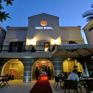 Hotel je jedinstven svojim izgledom. Čine ga tri odvojena objekta koje u celinu spaja dvorište, kao stvoreno za dečije uživanje i igranje. U sklopu objekta se nalazi 20 smeštajnih jedinica, recepcija I lobi, restoran, aperitiv bar, hotelski bazen, sauna. Sve smeštajne jedinice su opremljene svojim kupatilom, klima uređajem, kablovskom televizijom, frižiderom, sefom, fenom, telefonom. Četiri dvokrevetne sobe su jedine koje nisu sačinjene iz dve prostorije, dok sve druge sobe čine dve prostorije koje su odvojene. Pored standardnih dvokrevetnih soba hotel poseduje i deset “Junior suite” soba i šest apartmana.